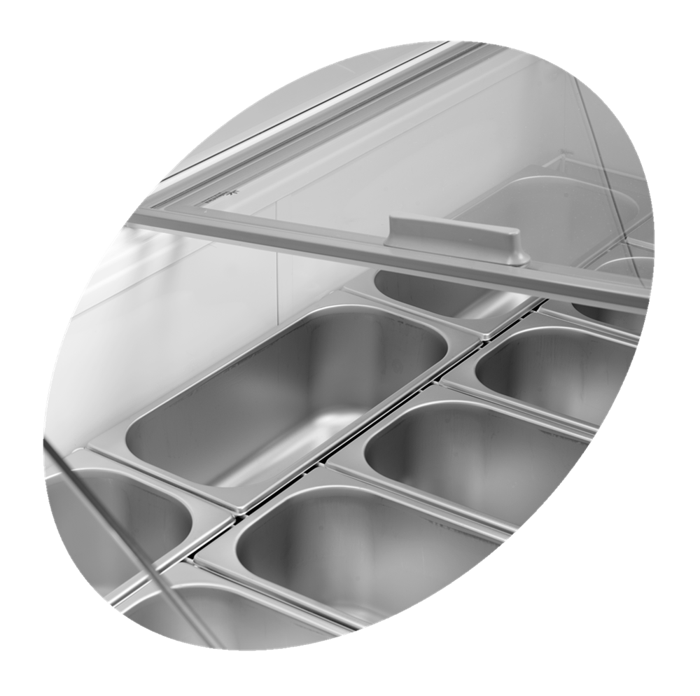 UDRS-serien er en del af TEFCOLDs premium fryserprogram. Den byder på høj kvalitet og et elegant design med en lav front, der giver et godt overblik over indholdet. Isdisken har vippelåg på bagsiden, hvilket hjælper med at isolere og spare på energien, når du ikke er i gang med at servicere kunder over det buede frontglasparti. Fryseren er naturligvis velegnet til napoli iskantiner (ikke inkluderet).
